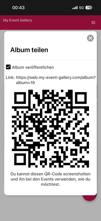 Album veröffentlichen & QR-Code erhalten